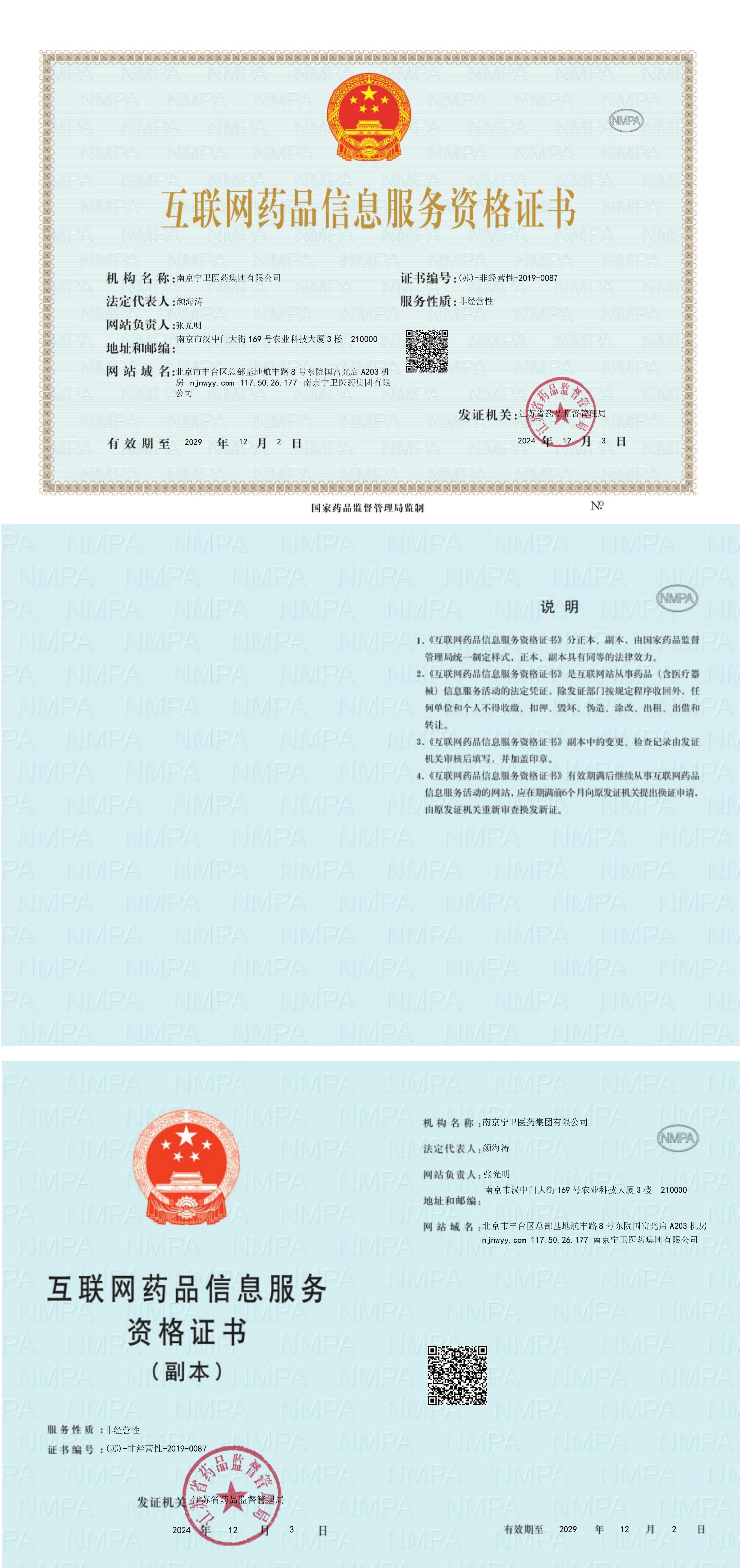 互聯(lián)網(wǎng)藥品信息服務(wù)資格證書(shū)編號(hào):(蘇)-非經(jīng)營(yíng)性-2019-0087